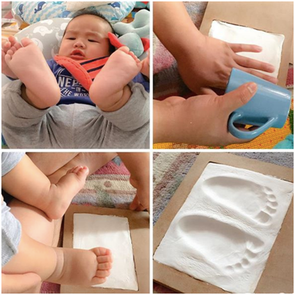 An air-drying clay handprint & footprint keepsake photo frame kit, that helps you capture the memory of their tiny hands and feet. Make an impression of their tiny & feet and accompany them with 2 adorable photos