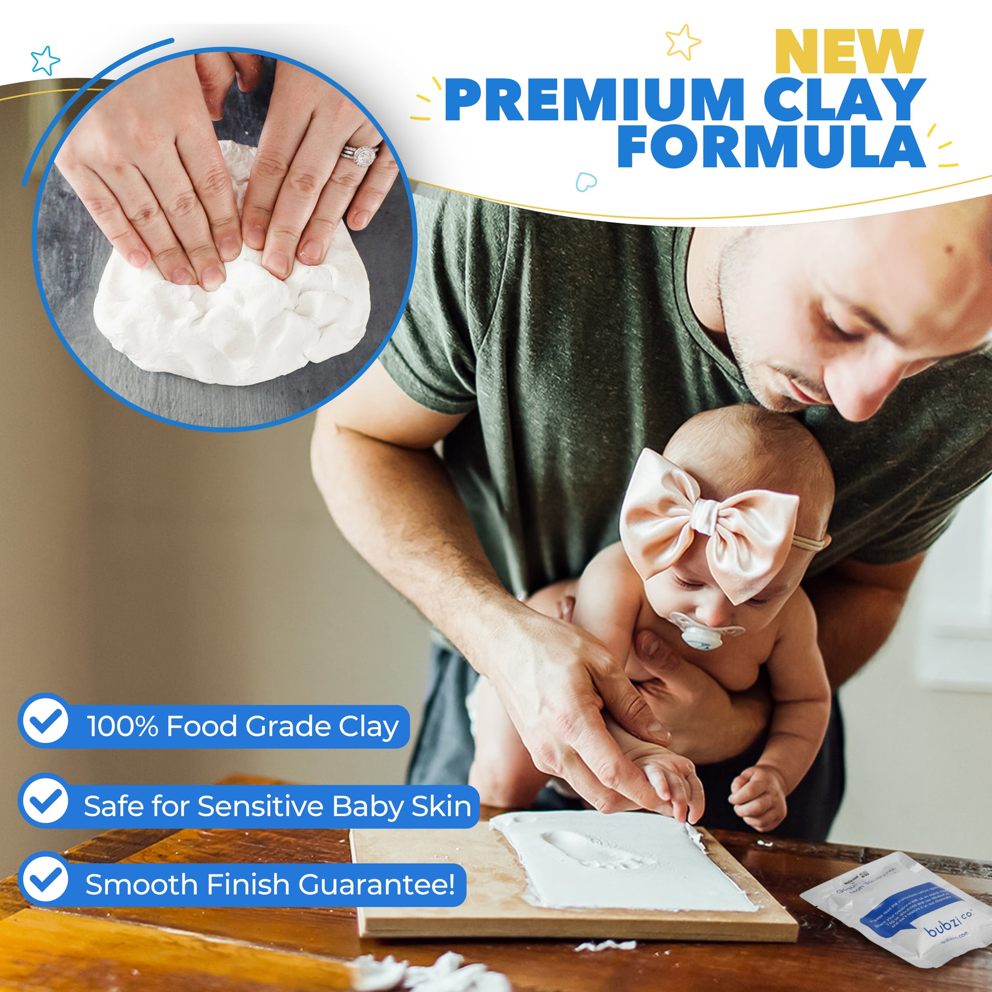 Bubzi Co Air-Drying Clay Baby Handprint & Footprint Kit Photo Keepsake Frame